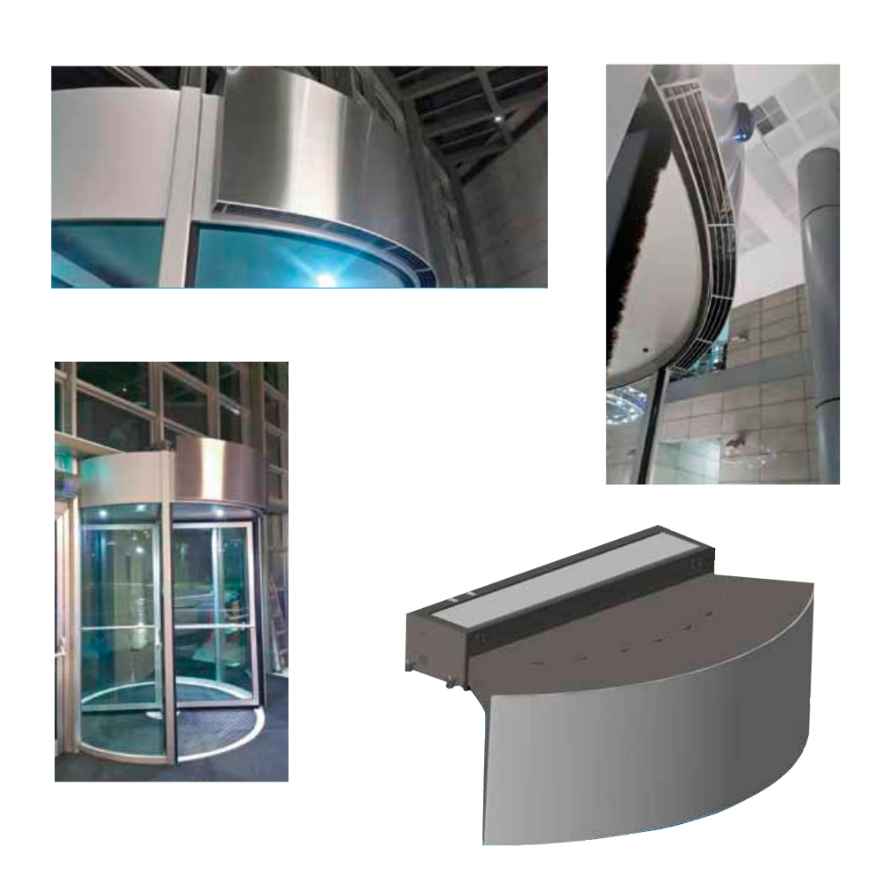 Повітряні завіси для дверей карусельного типу, що обертаються, досить специфічний продукт, але не замінний для великих торгових центрів, бізнес центрів, розважальних та інших закладів де встановлені обертові двері.
